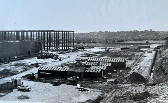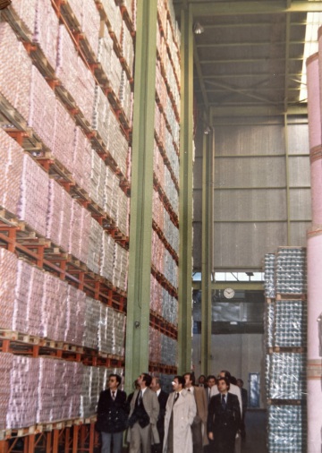 Por ubicarnos un poco en el tiempo podemos decir que los primeros trabajadores comenzaron la formación en mayo del 74 y la ceremonia de colocación de la primera piedra fue en julio del mismo año y, el primer rollo producido en la fábrica fue el 7 de julio del 75. No caben dudas de que antes de julio del 74 ya estaban muy avanzadas las obras de preparación del terreno como se puede ver en una de las fotografías de la exposición.