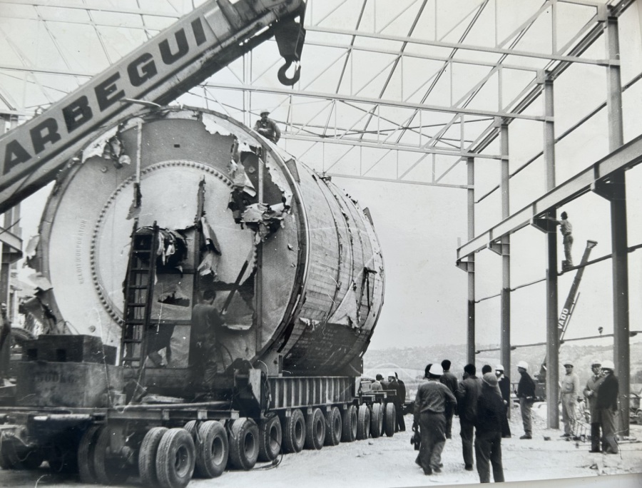 Como he dicho antes en diciembre del 74 se acabaron las prácticas y la fábrica no comenzó a producir hasta julio del 75, el día de San Fermín, y entonces los seis primeros meses del 75, ¿qué hacían más de trescientas personas en una fábrica que no producía? En Allo diríamos que no hacían más que estorbar. Parece ser que a cada uno se le buscó y se le encontró un acomodo para auxiliar o colaborar con los técnicos de las distintas empresas que estaban montando la factoría, entre otras Abengoa (montajes eléctricos), Intecsa (maquinaria), Julin (tuberías inoxidables y calderería, era francesa) y Dragados y Construcciones (construcción). Ahondando más en esta política de contratación se dieron muchos casos, después de unos años de trabajo, en los que un padre o una madre empleados en la fábrica, cesaban voluntariamente y su puesto de trabajo pasaba a su hijo o hija.