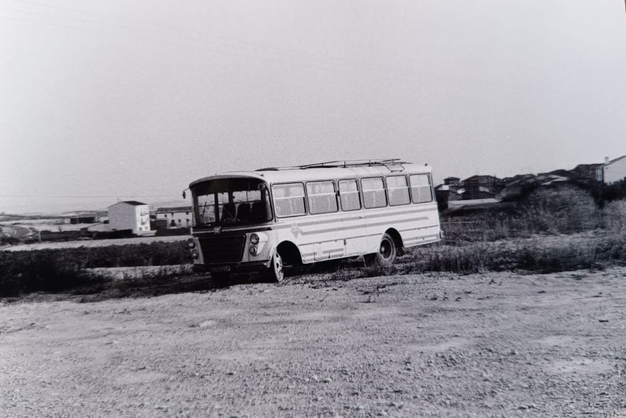 En el artículo sobre la papelera con motivo de su cincuenta cumpleaños, cuando le tocó el turno a EL TALGO, nos lamentábamos de no poder contar con fotografías de nuestro emblemático autobús. Tras cuatro meses siguiendo el refrán " El que la sigue la consigue y el que la consigue la remata", y en un ejercicio de brillante tozudez, nuestro convecino de Allo Javier Macua Azcona ha logrado perseguir, conseguir y rematar tres fotos entrañables del protagonista de este capítulo, " El TALGO de Allo". Agradecemos desde aquí el trabajo que se ha tomado para hacer posible que nuestros lectores puedan disfrutar de estas imágenes. En dos de ellas, se ve al autobús solo, en medio de un solar como apartado de la circulación en actitud de reposo. En la otra, en el paseo de La Fuente, enfrente a la Harinera, como esperando que lleguen los viajeros para partir a algún destino concreto.