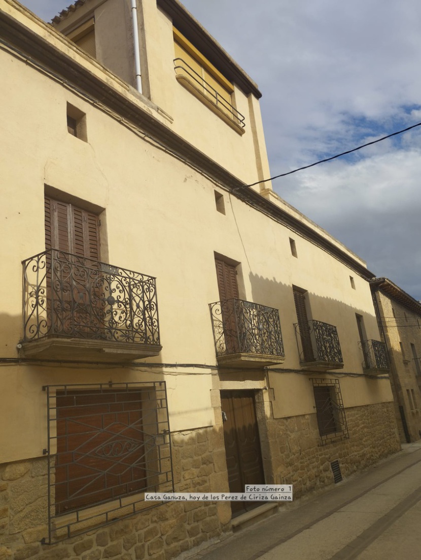 La construcción de casa Ganuza la realizó, al parecer, Diego Ganuza Martínez y la reformó su hija M.ª Angela. (No sabemos si la casa anterior estaba en el mismo lugar). Como curiosidad, en el balcón central de esta casa - actualmente de los herederos de José Pérez de Ciriza Barbarin - se aprecia en forja las iniciales D.M.A.G, es decir , Dª María Angela Ganuza.
